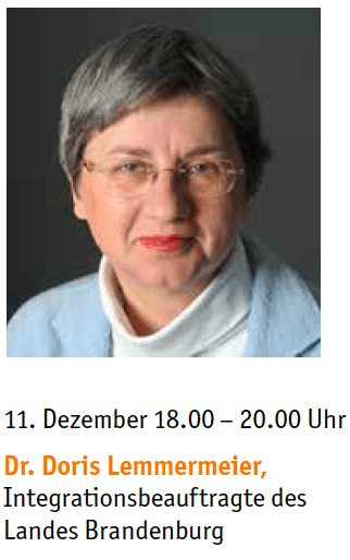 11. Dezember 2018, 18.00 – 20.00 Uhr: Dr. Doris Lemmermeier, Integrationsbeauftragte des Landes Brandenburg