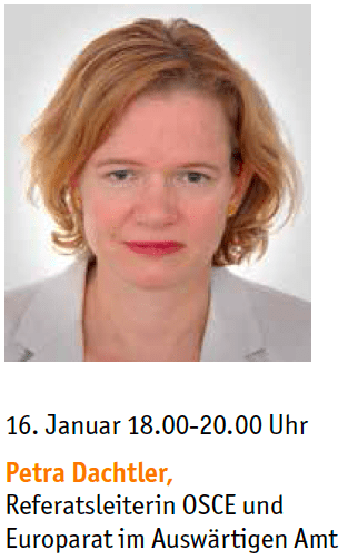 16. Januar 2019, 18.00-20.00 Uhr: Petra Dachtler, Referatsleiterin OSCE und Europarat im Auswärtigen Amt
